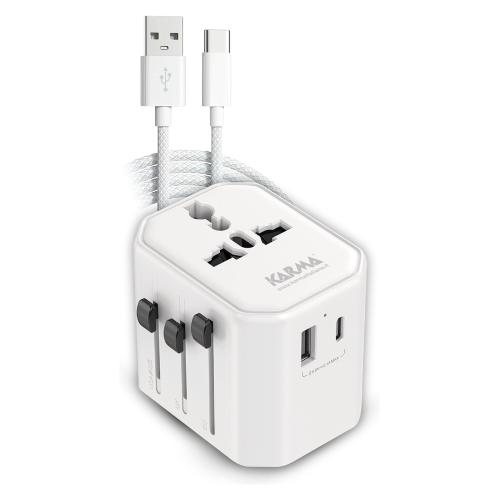 Adattatore da viaggio dotato di una multipresa e di vari tipi di spina, che si adattano alle prese di diversi paesi. Grazie a un dispositivo di sicurezza solo la spina utilizzata viene alimentata. Presenta inoltre una porta USB-A e una porta Type-C per l’alimentazione o la ricarica di dispositivi come telefoni o tablet. Nella confezione è incluso un cavo Type-C da 1mt