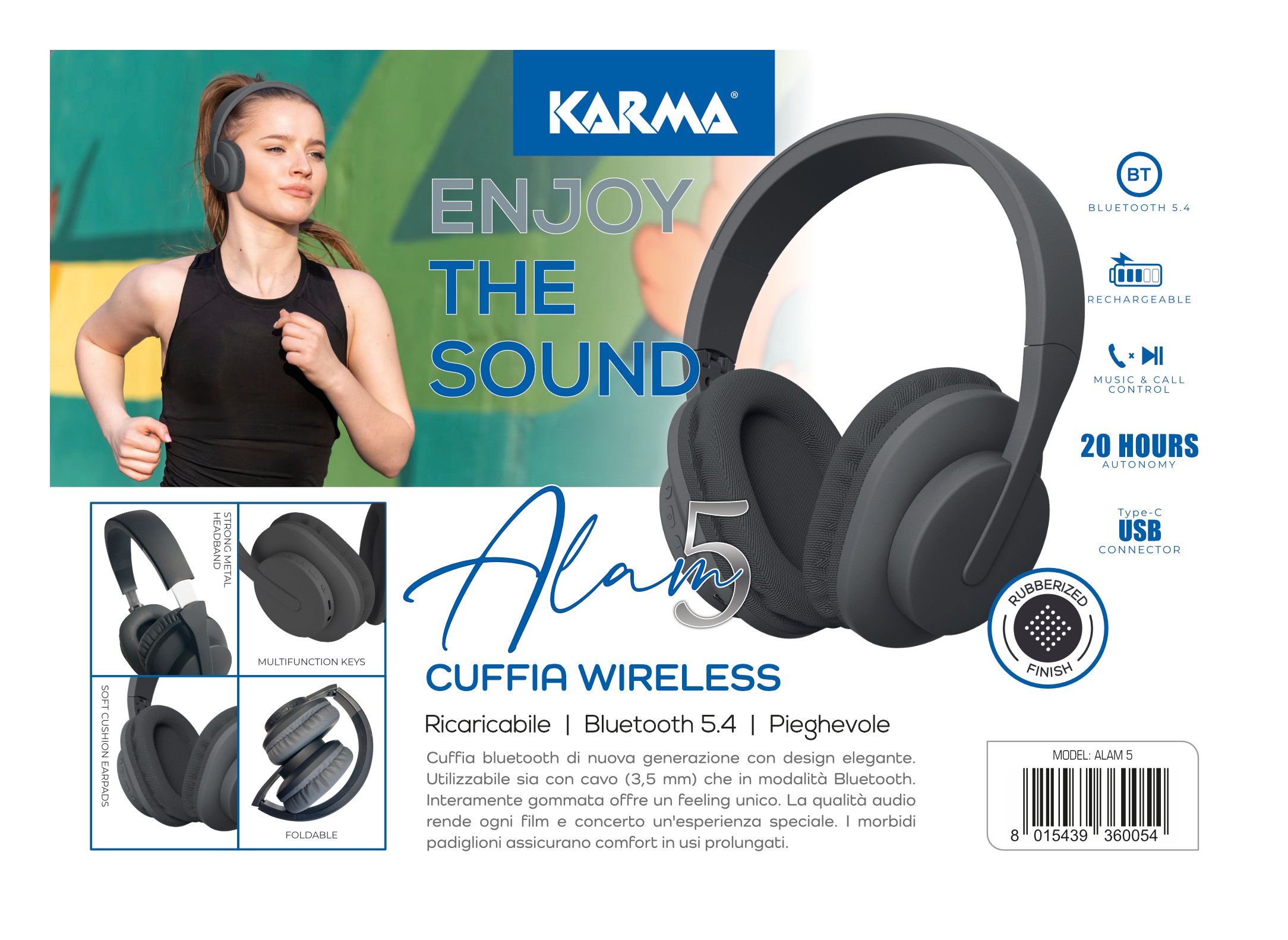 Cuffia bluetooth di nuova generazione con design elegante. Utilizzabile sia con cavo (3,5 mm) che in modalità Bluetooth. Interamente gommata offre un feeling unico. La qualità audio rende ogni film e concerto un'esperienza speciale. I morbidi padiglioni assicurano comfort in usi prolungati.
