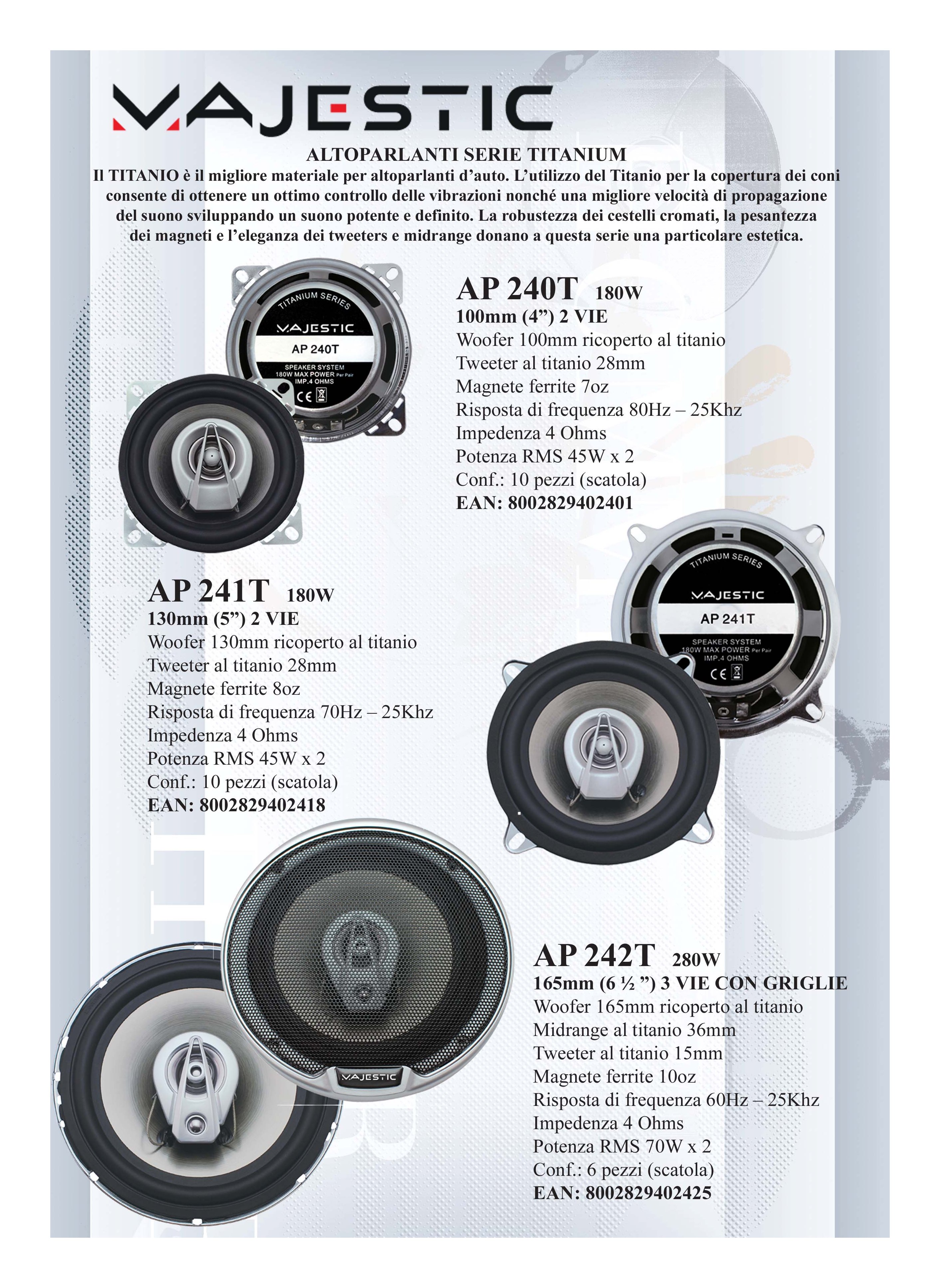 Altoparlanti auto SERIE TITANIUM Ap 240T Silver e Black 10 cm 040240 180W