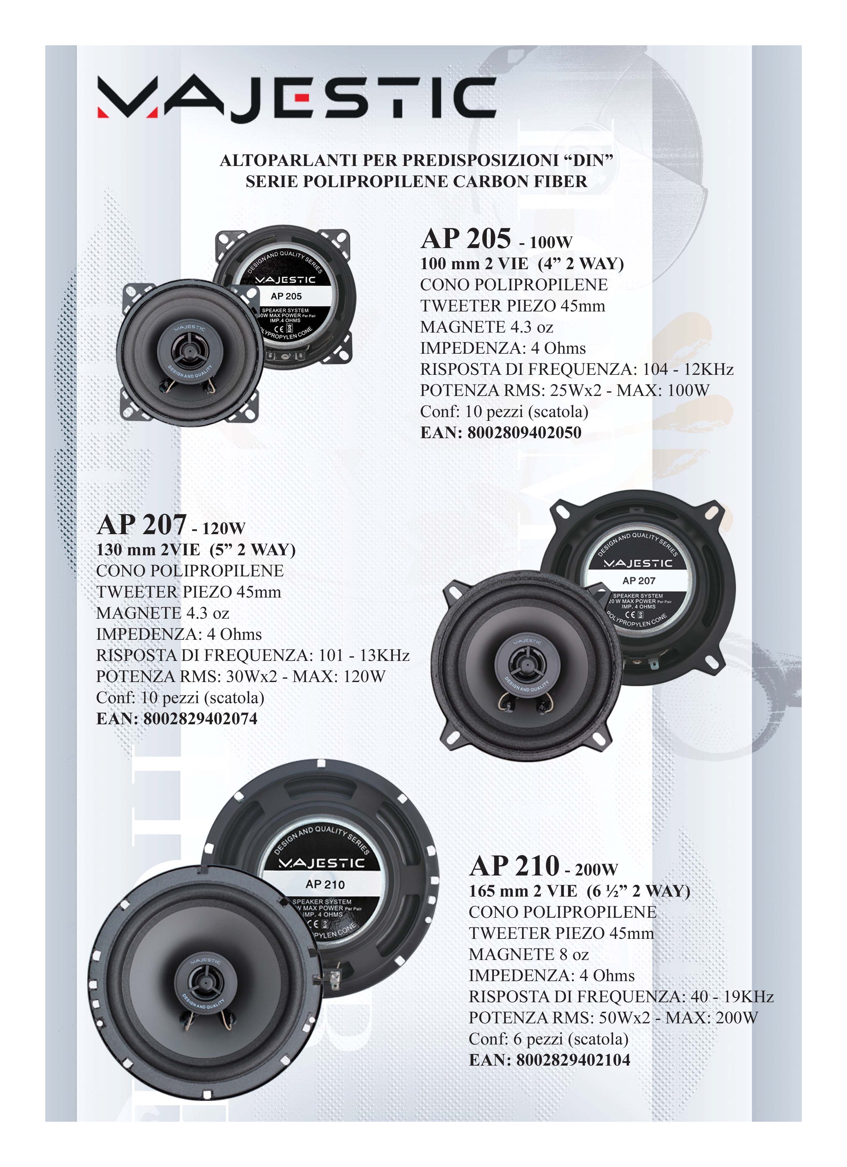 Majestic Altoparlanti auto POLIPROPILENE Ap 205 Black 10 cm 040205 100W
