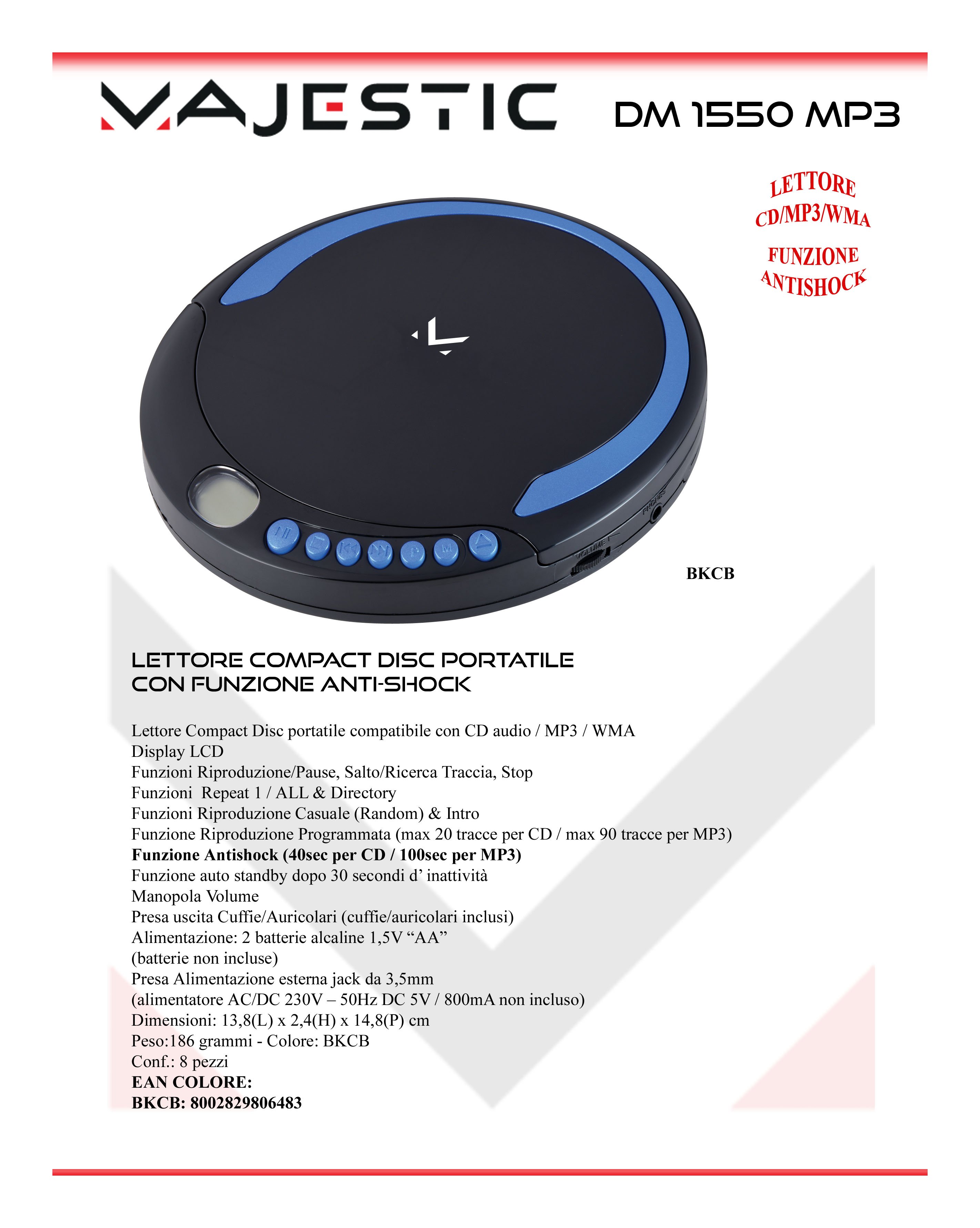 Majestic Lettore CD portatile Dm 1550 MP3 Black e Blue 109550