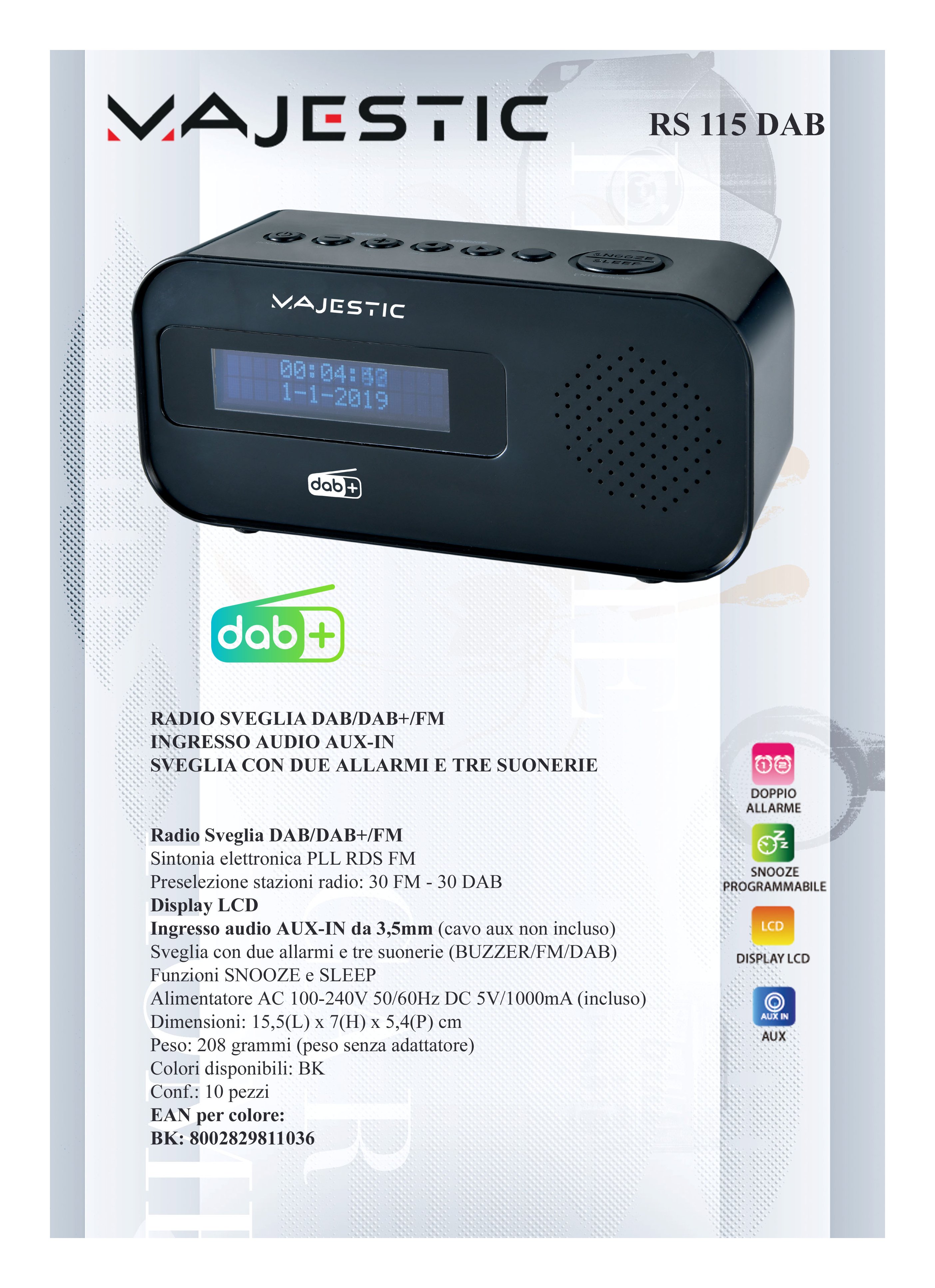 Radio sveglia DAB+ con due allarmi e tre suonerie
