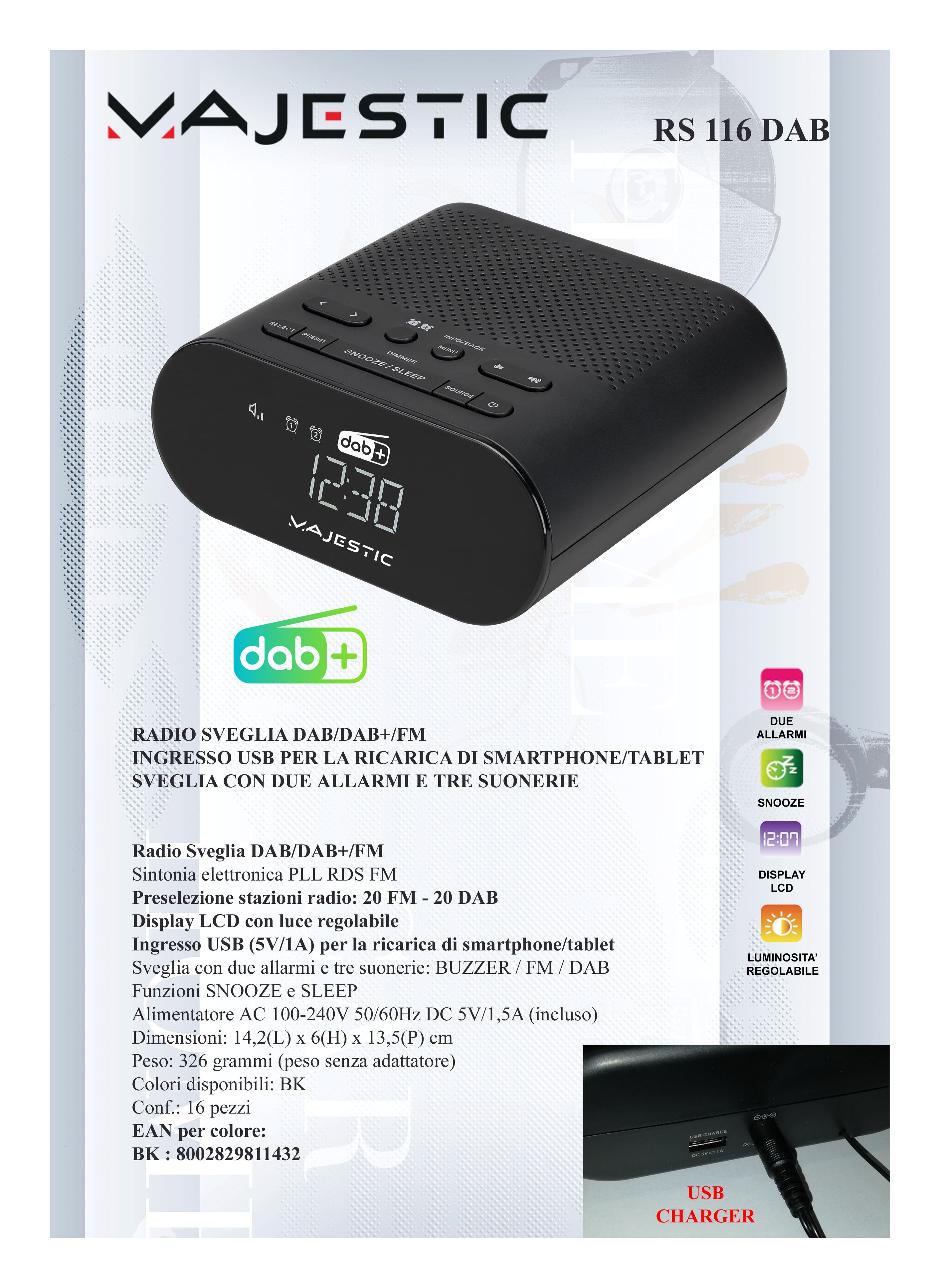 Majestic Radiosveglia Rs 116 Nero 119116
