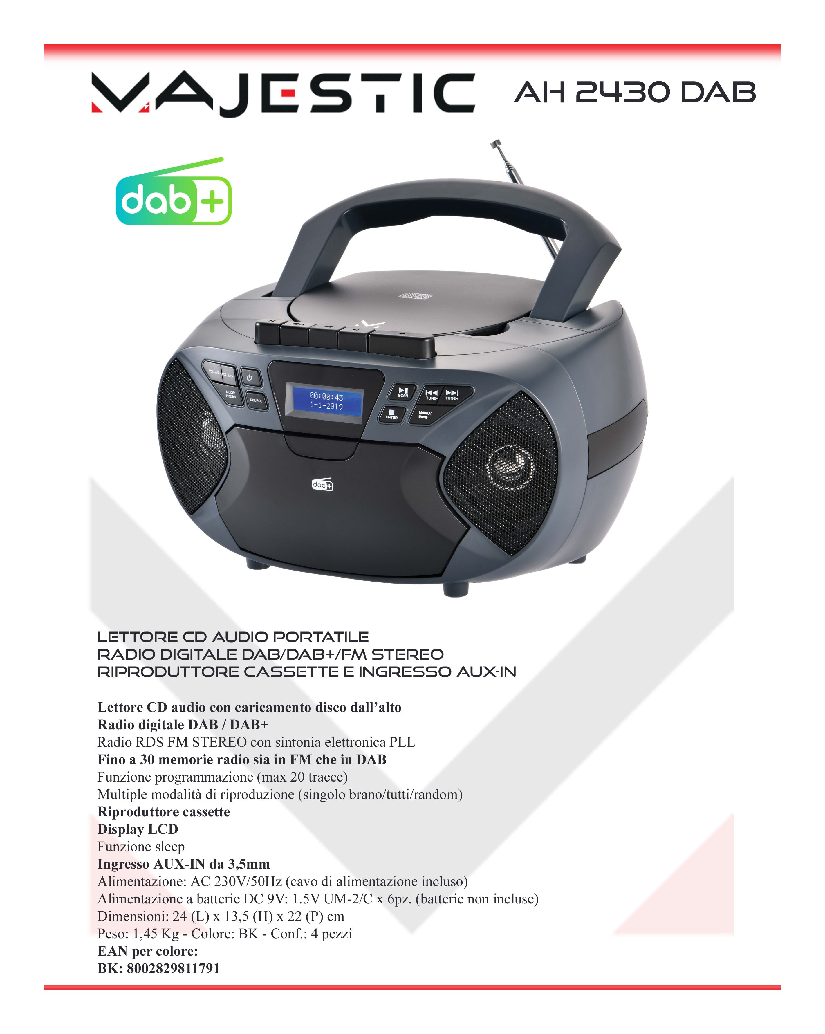 Abilitato alla ricezione del segnali radio analogico e digitale