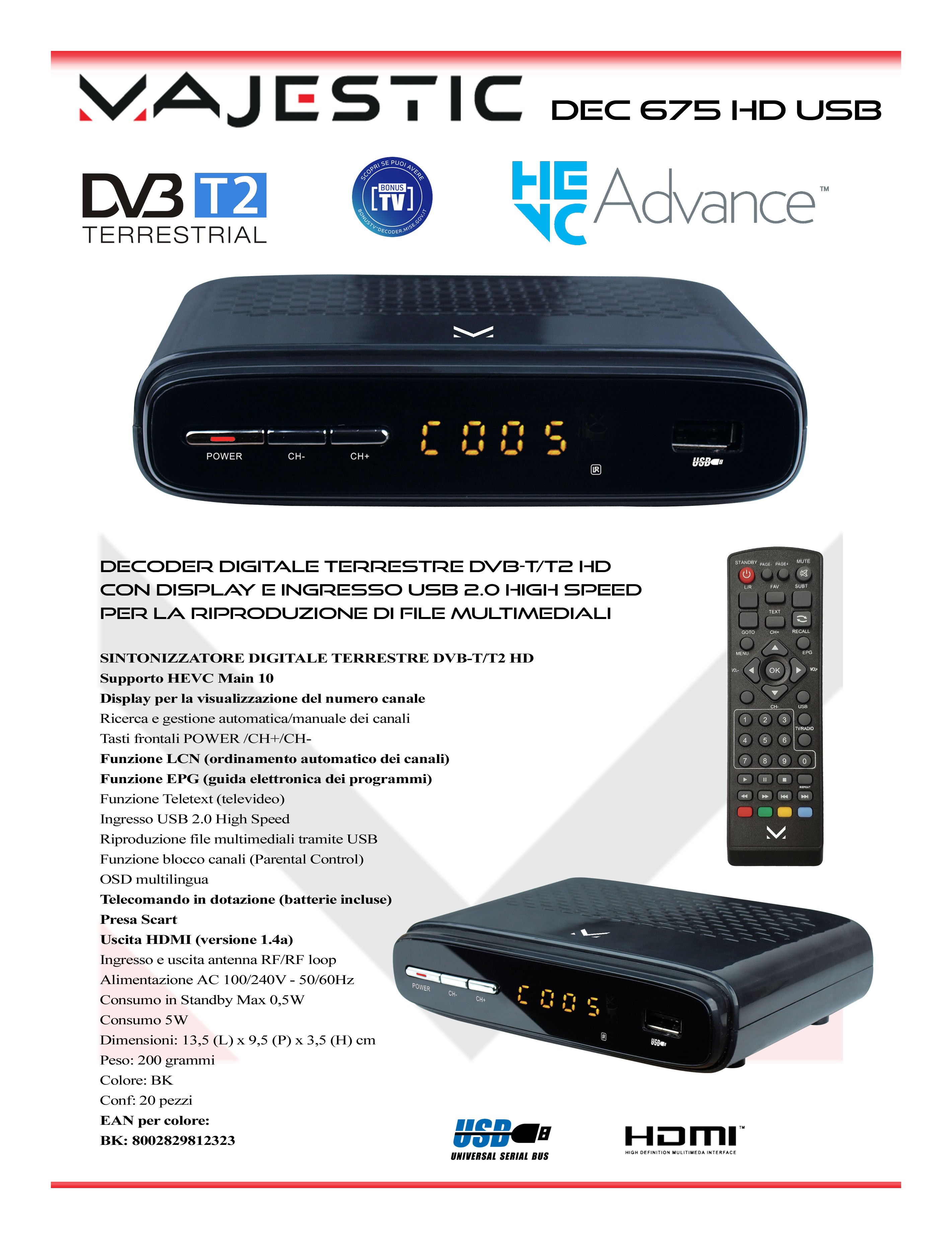 Majestic Decoder Dec 675 Hd Usb Black 100675 DVB-T2