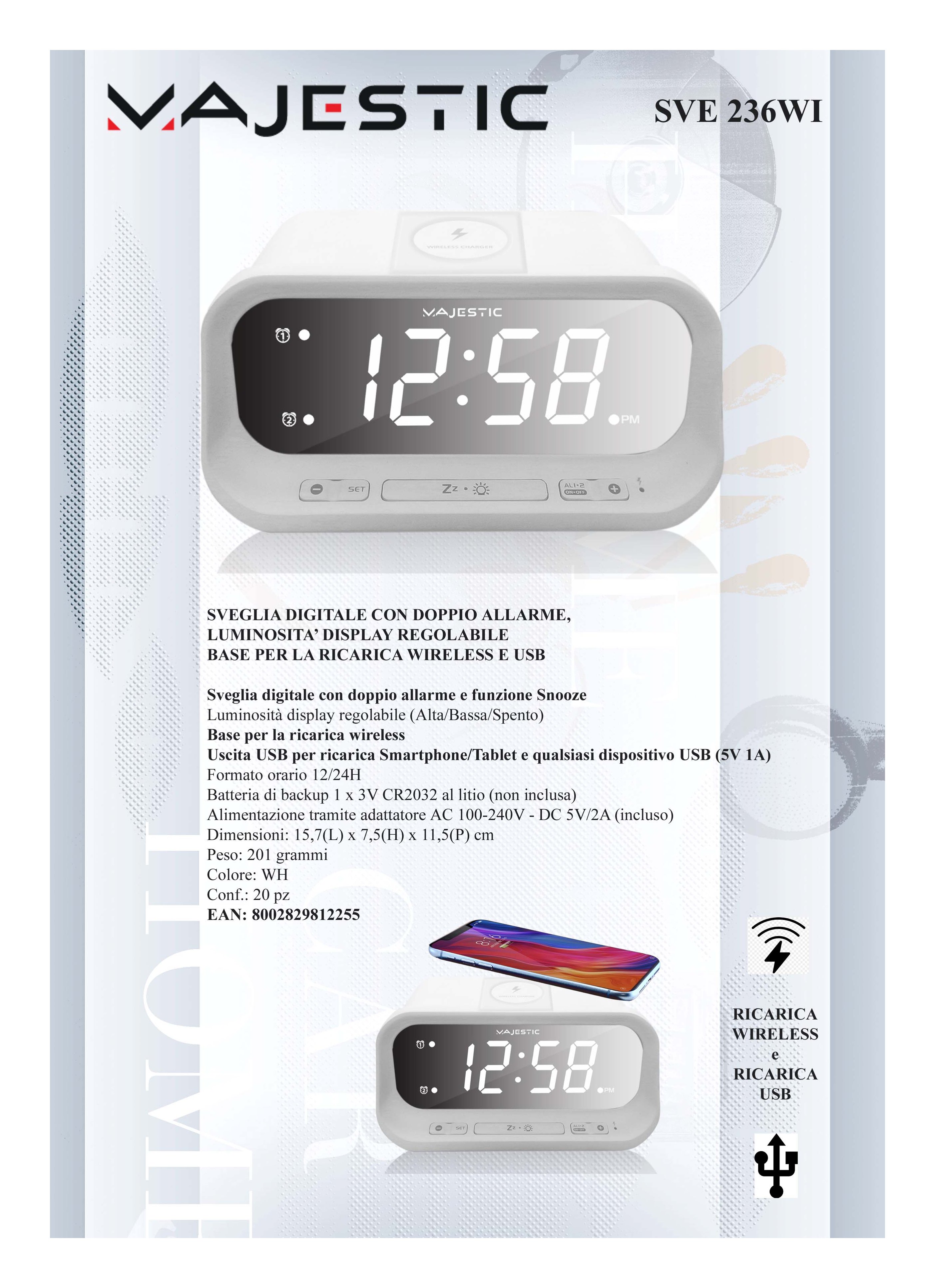 Uscita USB per ricarica Smartphone/Tablet e qualsiasi dispositivo USB (5V 1A)