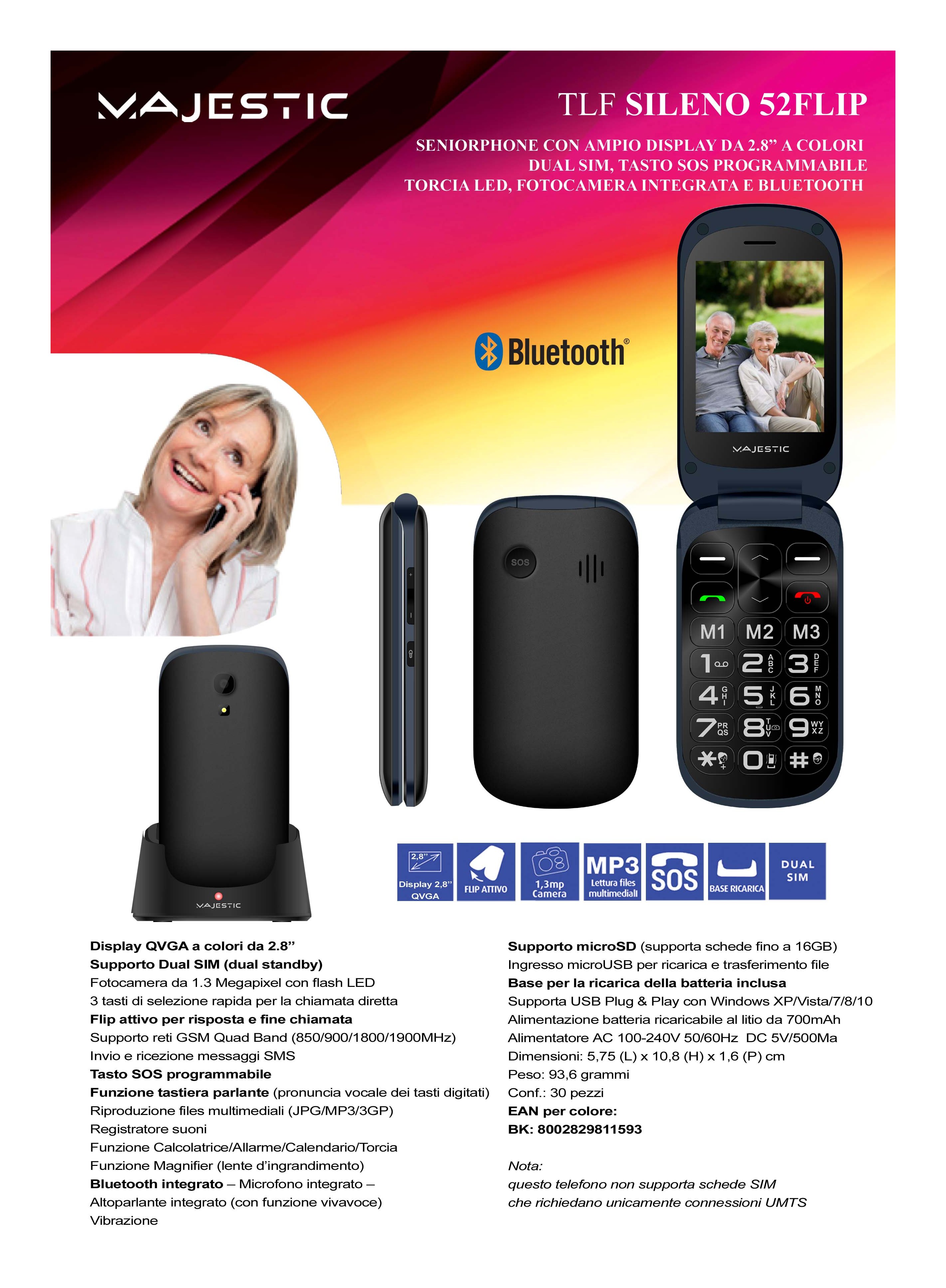 Majestic Cellulare 2G Gprs SILENO 52 Flip Black 300052 BK