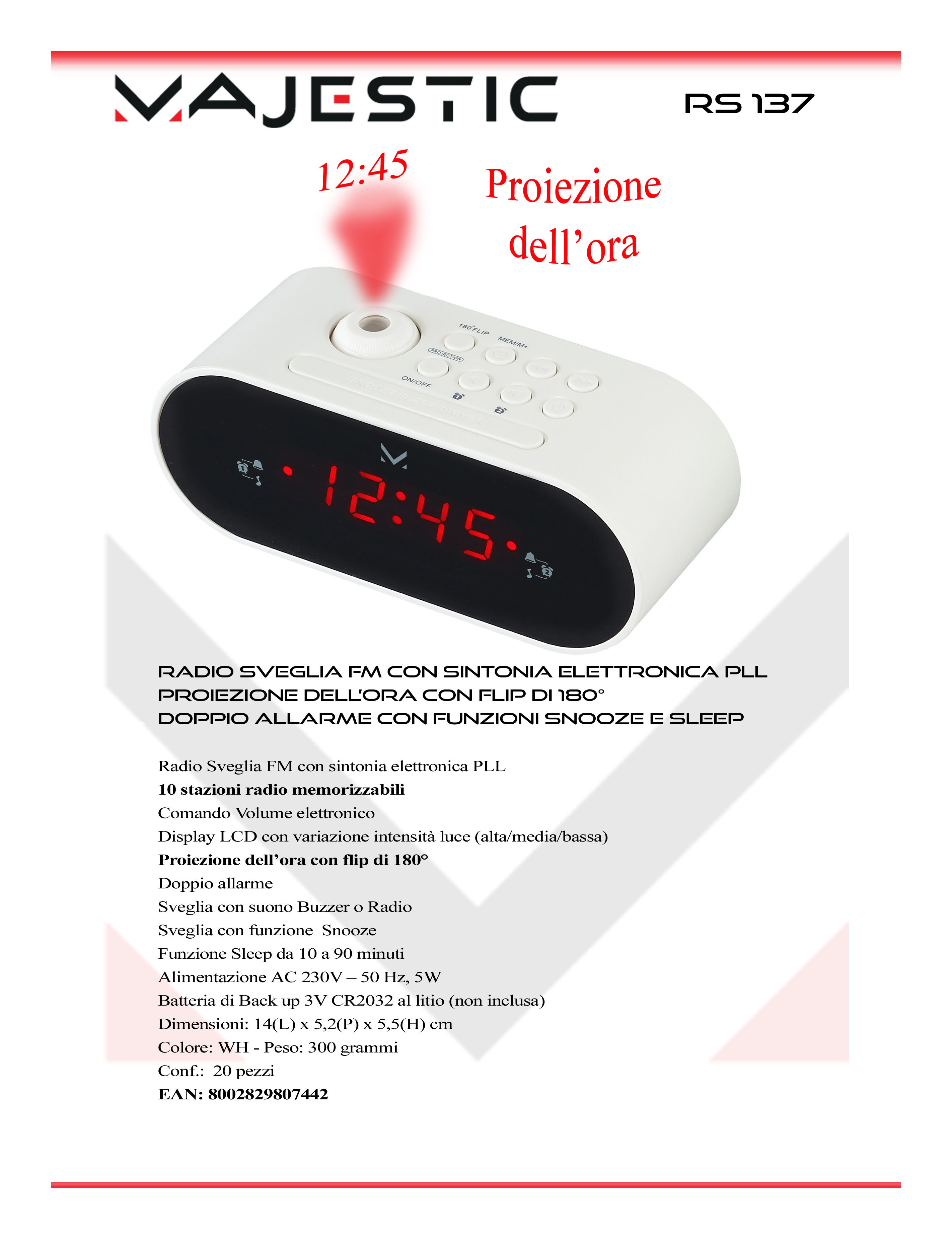 Radio Sveglia FM con sintonia elettronica PLL e proiezione dell'ora.