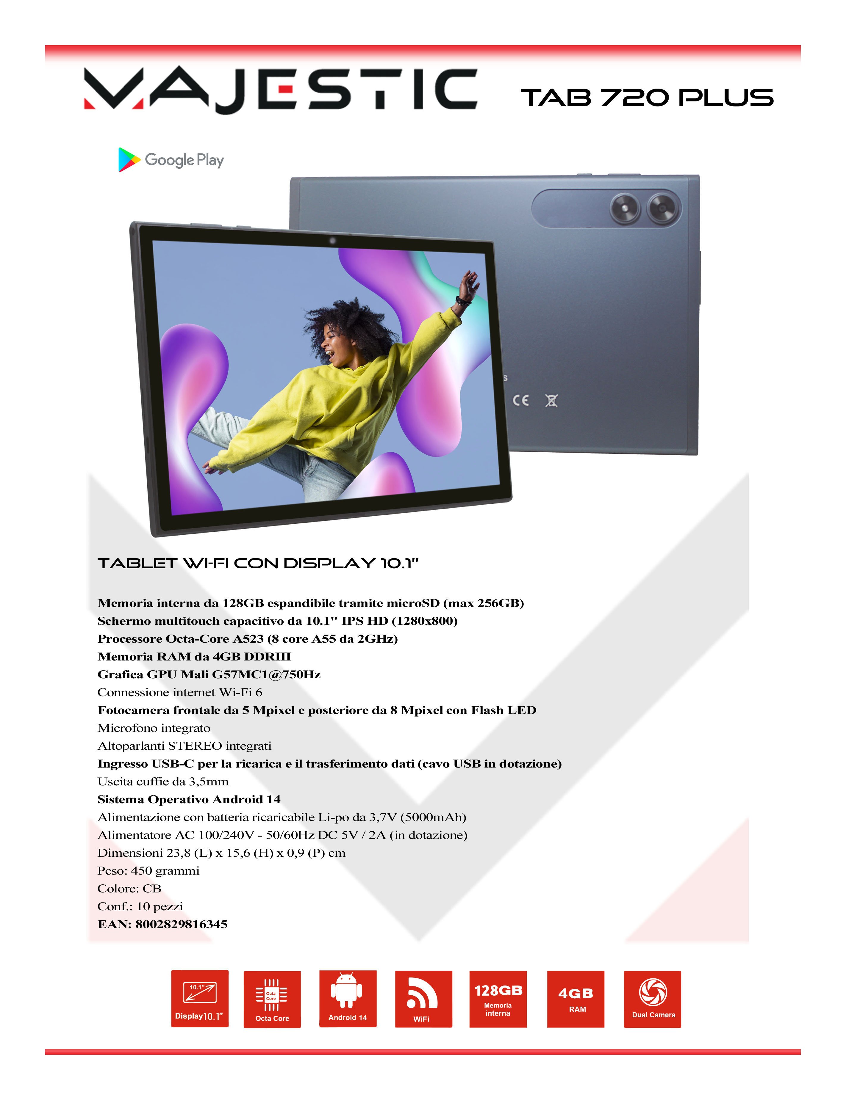 Majestic Tablet 10,1" TAB 720 PLUS WiFi Blue ( 128GB Ram 4GB 5000mAh ) 114720 CB