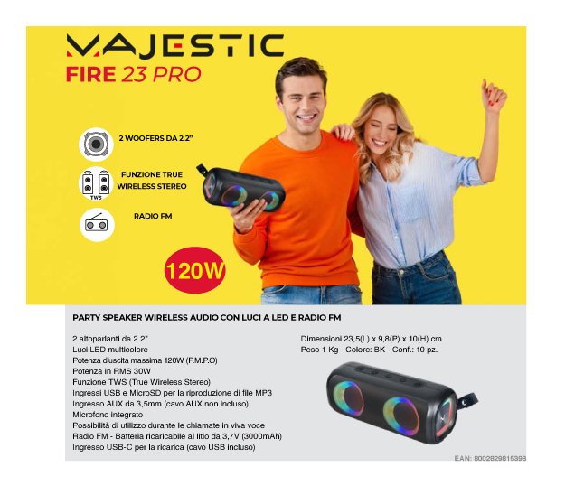 Majestic Cassa wireless FIRE 23 Pro Tws Black 15W 116123 BK