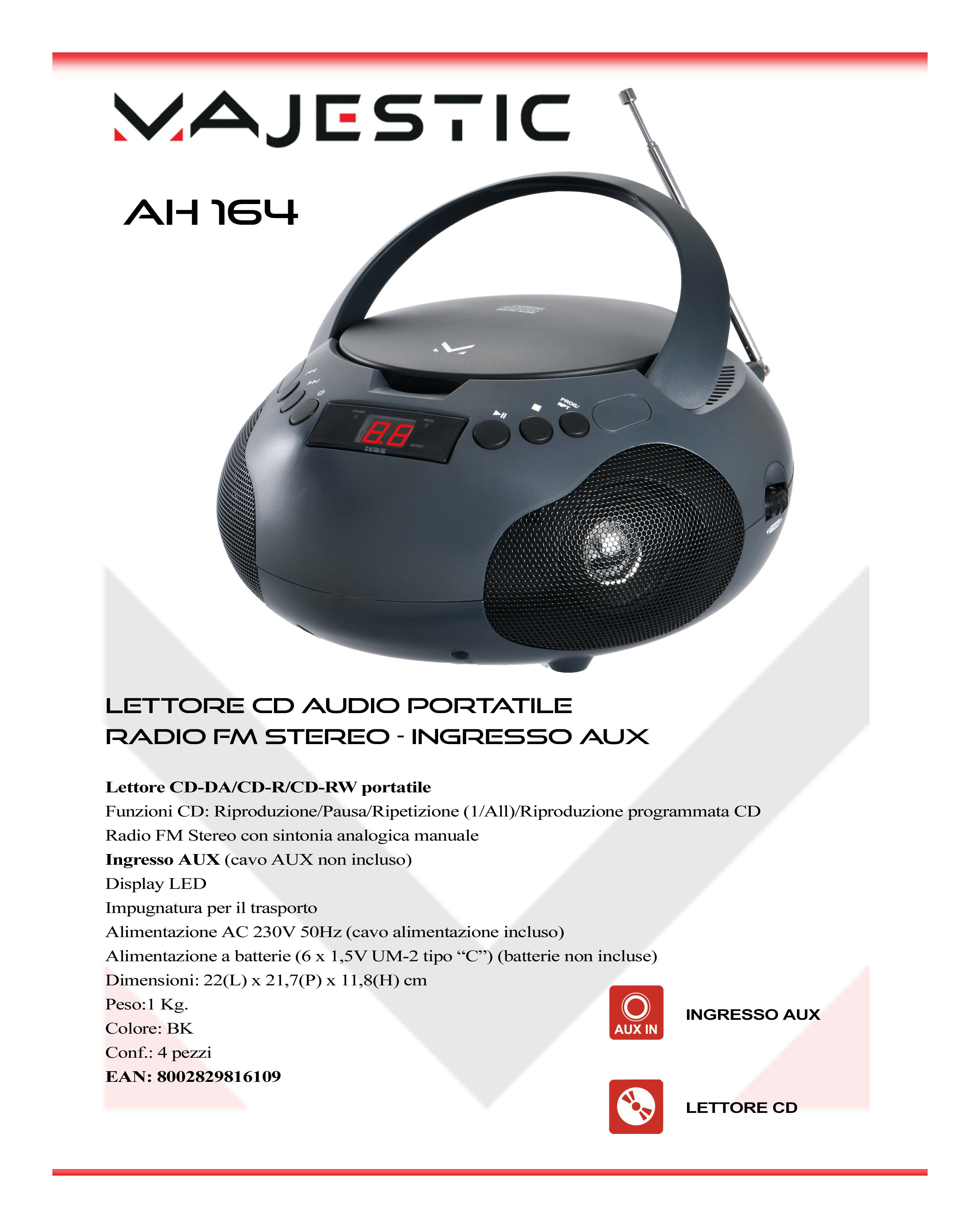 Scopri il tuo nuovo compagno musicale: un lettore CD portatile che combina praticità e stile! Con il suo design elegante e leggero, puoi portarlo ovunque, che sia a casa, in viaggio o durante una gita all'aperto.