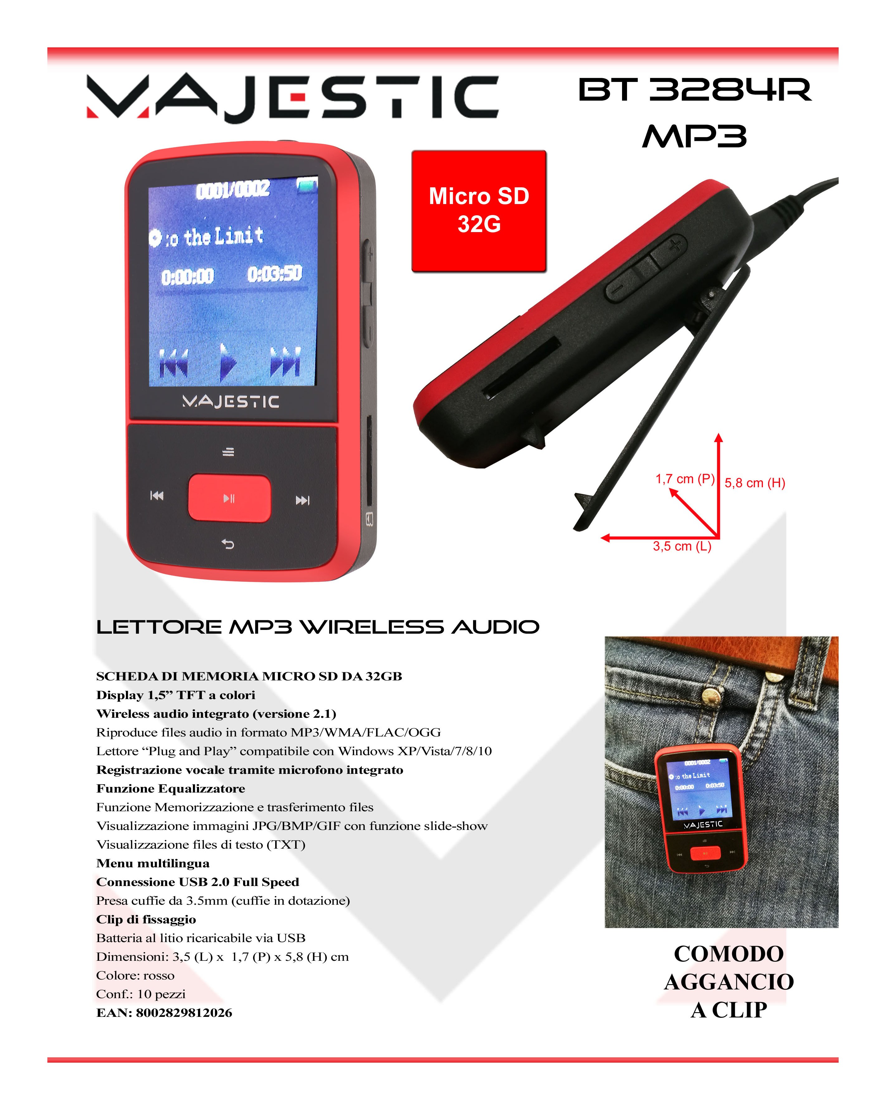 Questo lettore MP3 piccolo e leggero è perfetto per chi ama ascoltare musica mentre fa sport o si sposta. Ha un pratico aggancio a clip, così puoi fissarlo facilmente ai tuoi vestiti, alla cintura o alla borsa, senza doverlo tenere in mano. Ideale per chi corre, va in palestra o semplicemente vuole avere le mani libere.