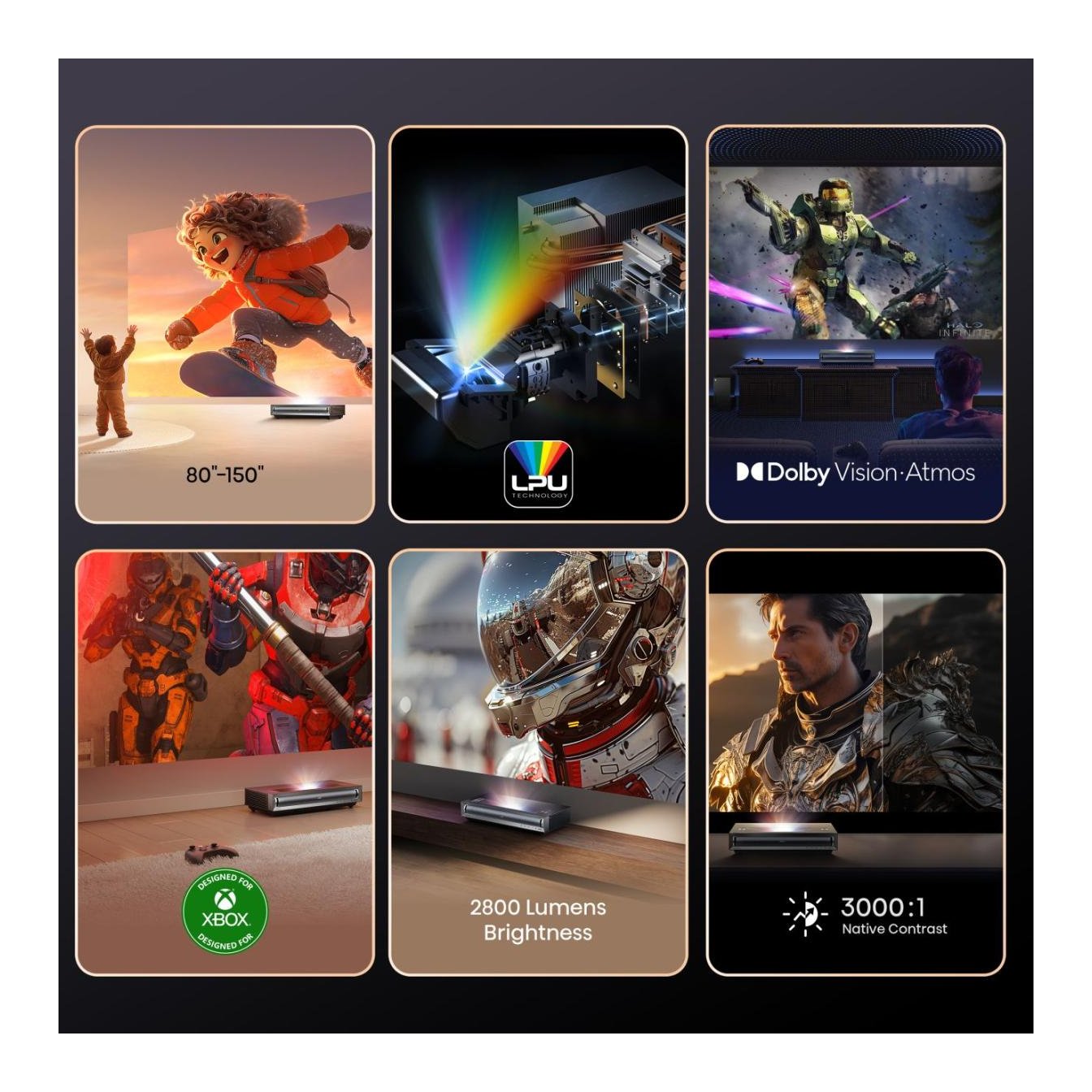 L’innovativa tecnologia tiro ultra corto consente di ottenere un’immagine gigante anche a pochi centimetri dalla parete, senza sacrificare risoluzione e nitidezza.