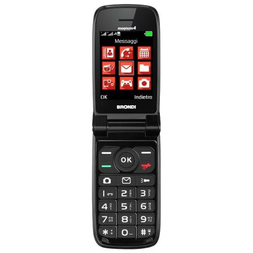 Il MAGNUM 4 della BRONDI è un telefono cellulare Clamshell GSM Dual SIM fornito di maxi display da 2.8 pollici per favorire una maggiore facilità di visualizzazione delle icone e della navigazione grazie ai caratteri grandi del Magnum 4.