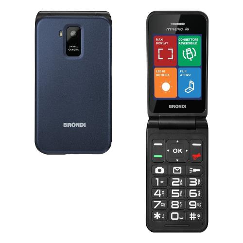 Il nuovo Brondi Intrepid 4G è un telefono dual sim con apertura a flip dal design moderno ed elegante che sfrutta la velocità della rete 4G. Nella confezione sono inclusi, oltre al telefono: auricolari, caricabatteria, batteria al litio da 1000 mAh.