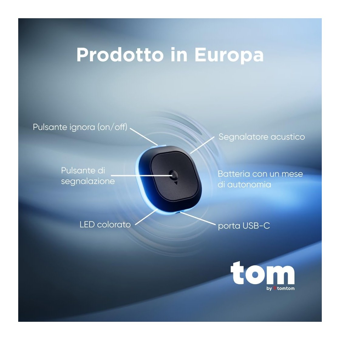 Scopri Tom by TomTom, il tuo nuovo assistente di guida intelligente. Progettato per aumentare la tua concentrazione e la tua sicurezza alla guida, Tom ti avvisa delle mutevoli condizioni del traffico, di ostacoli e degli autovelox tramite segnali audiovisivi. Mantieni la concentrazione dove serve: sulla strada davanti a te, grazie a Tom, il tuo compagno di viaggio. Per associare Tom all’app TomTom è necessario Android 12 o iOS 18 o versioni successive.