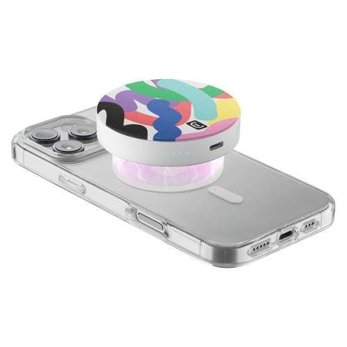 MAG VIBE è il power bank MagSafe da 3000 mAh con design compatto e rotondo, decorato con grafiche colorate e vivaci. Si aggancia magneticamente all’iPhone per una ricarica wireless da 5W, garantendo fino a 22 ore di autonomia extra. Dotato di porta USB-C da 12W e indicatori LED, è perfetto per chi cerca un accessorio pratico e alla moda.