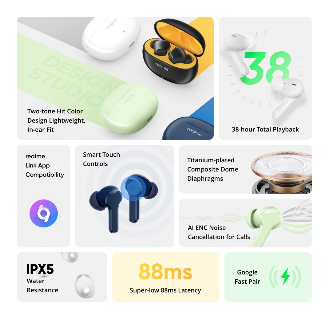 Realme Auricolari microfono bluetooth BUDS T110 Tws Punk black