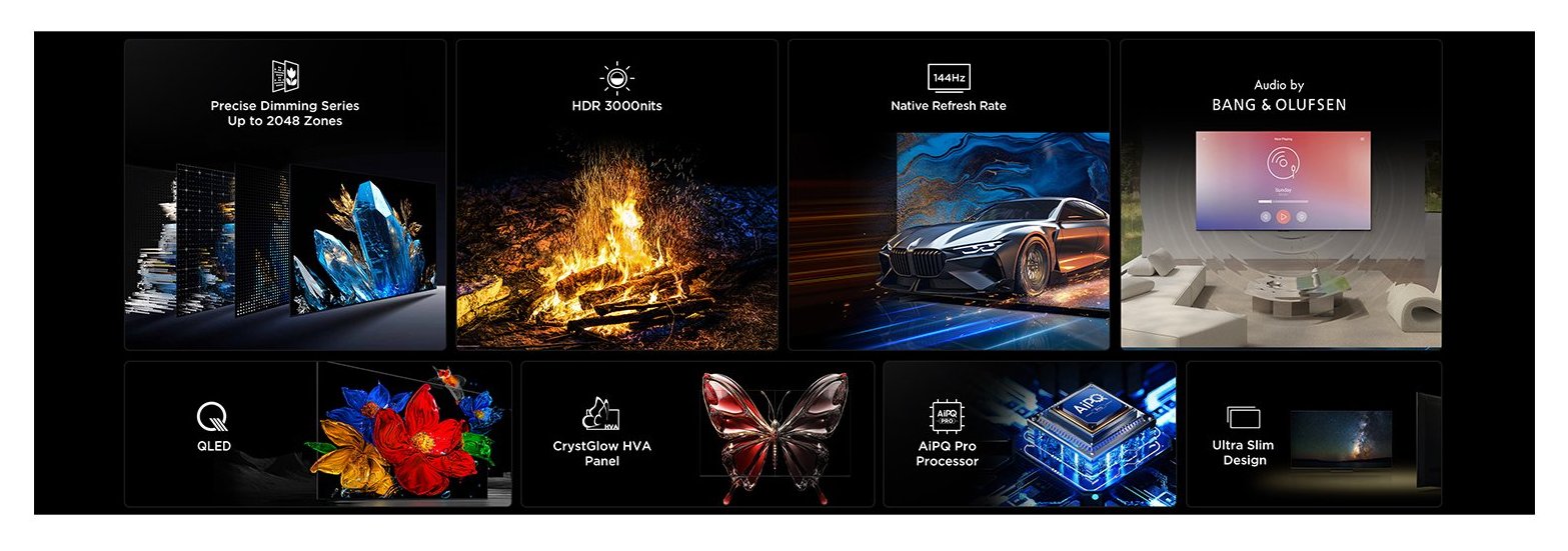 I TV TCL della serie C79K combinano la tecnologia QD-Mini LED, pannello QLED, risoluzione 4K HDR Premium, luminosità di picco 3000nit, e il Refresh Rate a 144Hz per una migliore qualità d'immagine in alta definizione.