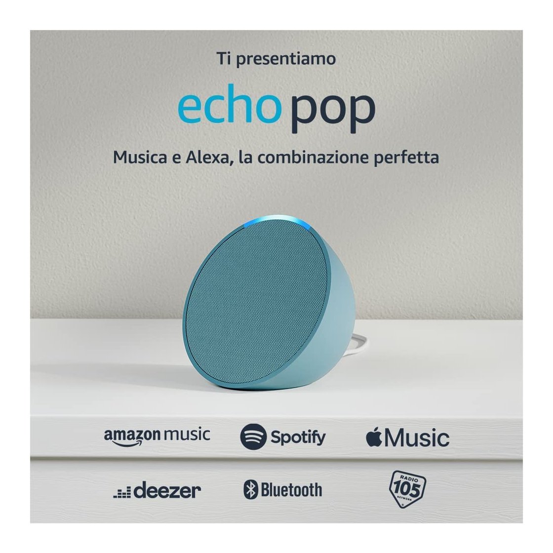 Scegli il colore che più si addice al tuo stile, trova il punto migliore dove posizionare Echo Pop e riproduci la canzone perfetta per ogni momento, goditi la totale libertà del controllo vocale con Alexa.