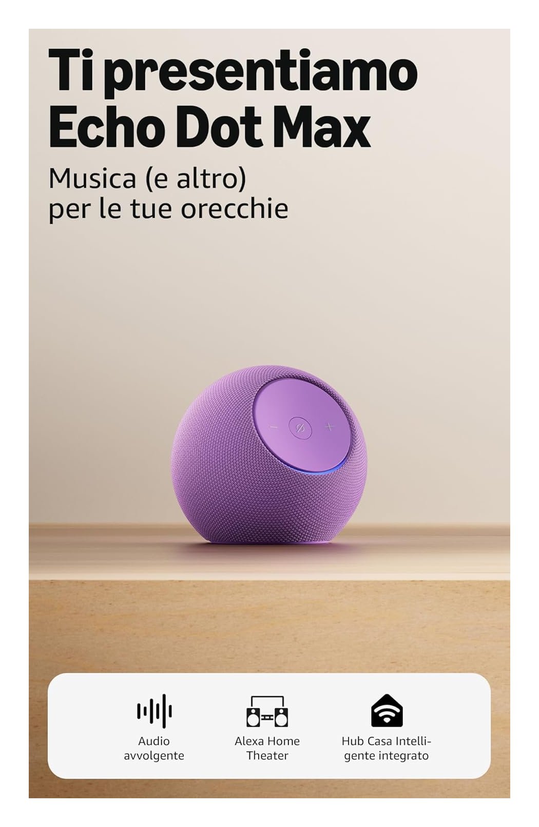 In questo altoparlante intelligente con Alexa abbiamo portato ai massimi livelli l'aspetto, il suono e le funzionalità per Casa Intelligente. Hub Casa Intelligente integrato, tecnologia Omnisense per rendere l'esperienza ambientale ottimizzata e un chip AZ3 per prestazioni rapide.