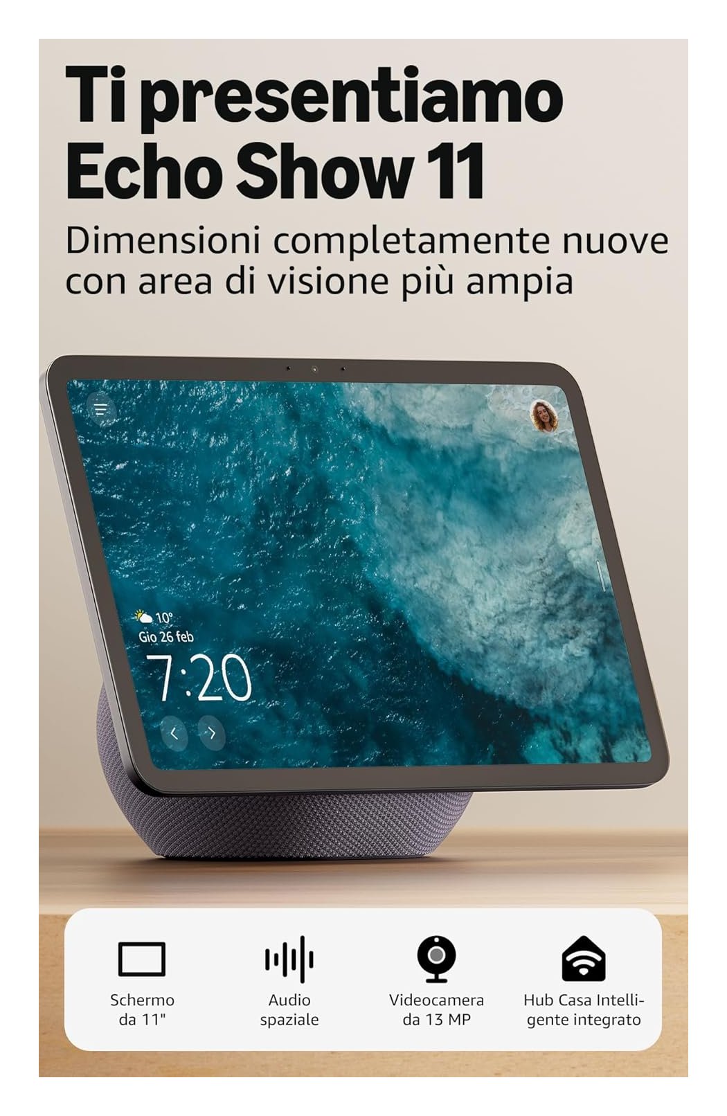 Il nostro primo schermo intelligente da 11” è stato completamente riprogettato con un display più sottile, elaborazione veloce e avvolgente audio spaziale. Hub Casa Intelligente integrato, un chip AZ3 Pro per prestazioni sensazionali e tecnologia Omnisense per rendere l'esperienza ambientale ottimizzata.