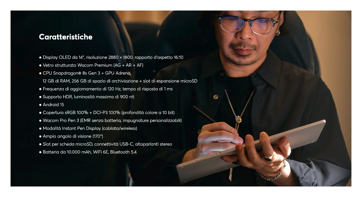 Wacom MovinkPad Pro 14 è la tavoletta grafica portatile definitiva per professionisti creativi e hobbisti ambiziosi. Crea, disegna, illustra e anima ovunque ti colga l'ispirazione, con un dispositivo progettato per la creatività prima di tutto, e per tutto il resto in secondo luogo.
