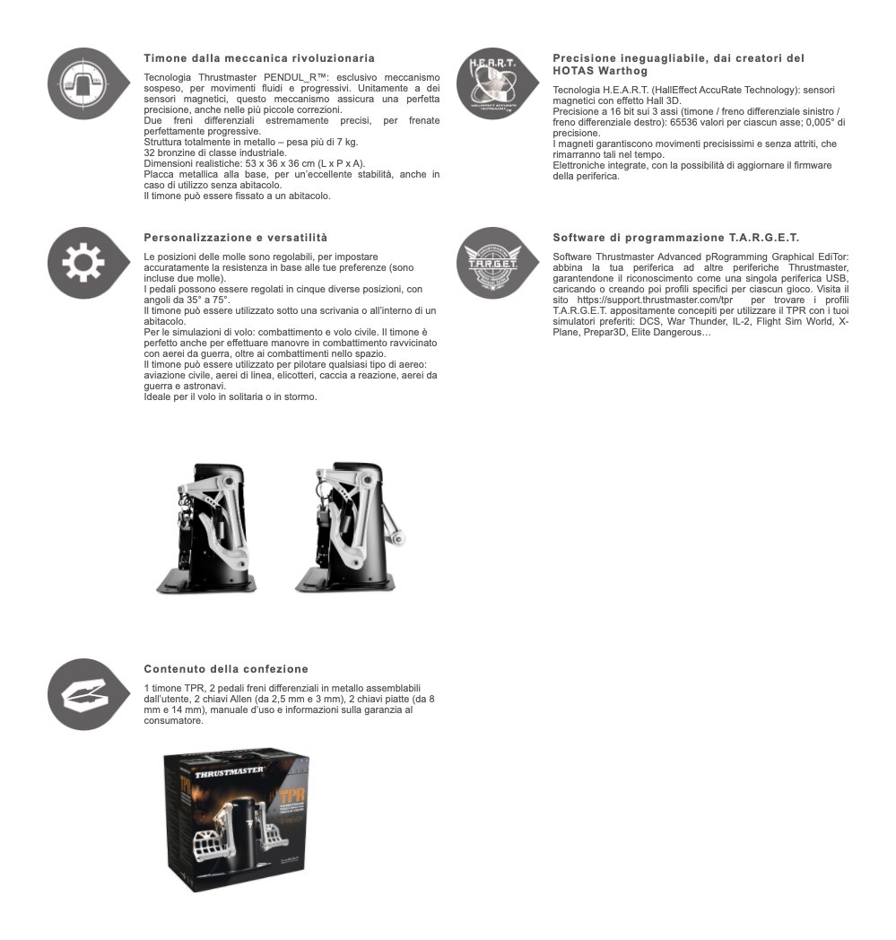 Thrustmaster Pedaliera simulatore volo Timone Tpr Rudder Silver e Black 2960809