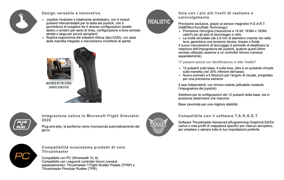 Preparati al decollo con il primo joystick Thrustmaster ad unire la tecnologia magnetica a controlli di volo ispirati al mondo dell’aviazione civile (la famiglia Airbus A320).