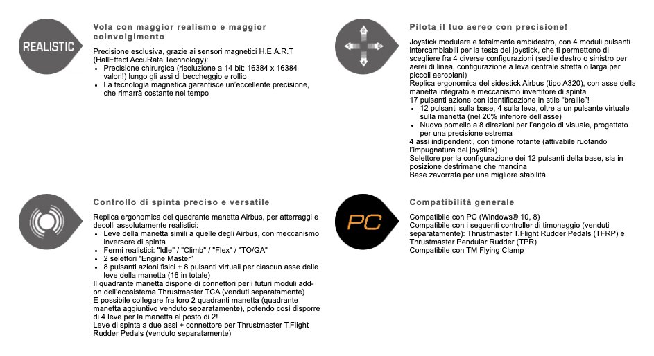 Repliche ergonomiche del sidestick e del quadrante manetta Airbus, famosi a livello mondiale.