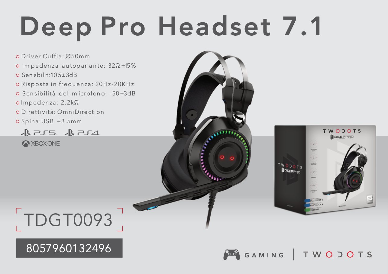 Cuffie gaming MULTIPIATTAFORMA Deep Pro Headset 7.1 Black TDGT0093