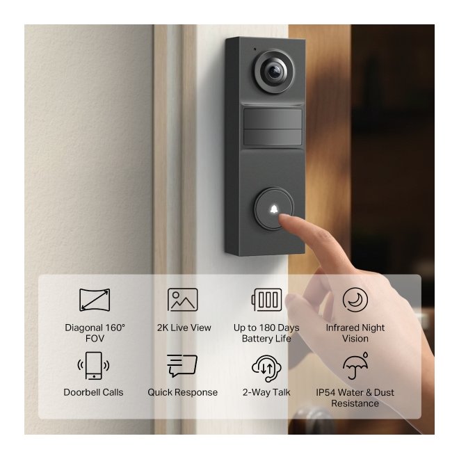 Citofono 2K Battery Video Doorbell Mini Black TD20