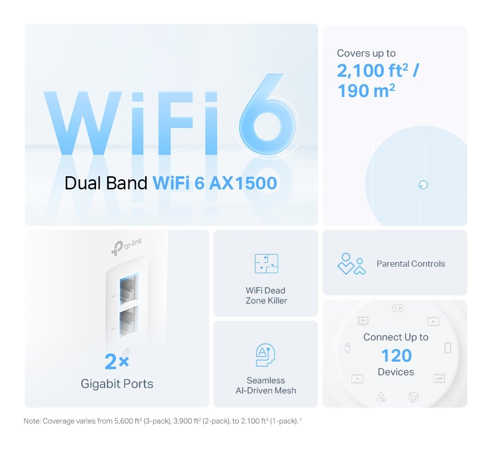 Grazie alla tecnologia Mesh i sistemi Deco consentono di creare una rete wireless unificata stabile e diffusa in tutta la casa, in grado di selezionare il miglior percorso di connessione per ogni dispositivo collegato alla rete, che è così libero di muoversi da una stanza all'altra senza avvertire lag e disconnessioni.