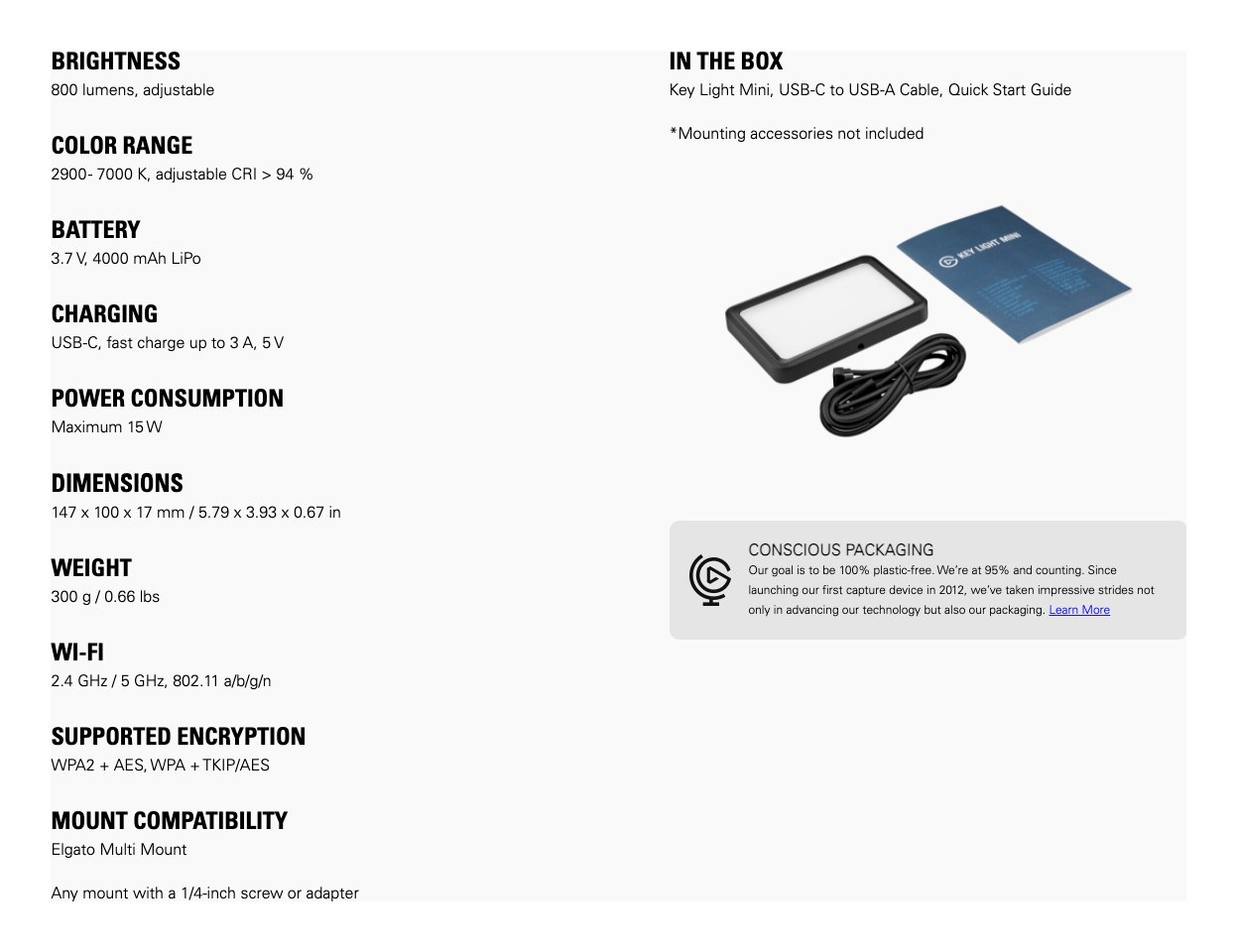 Elgato Illuminatore fotografico 800 lumens|2900 - 7000 K KEY LIGHT Mini Wifi Black 10LAD9901