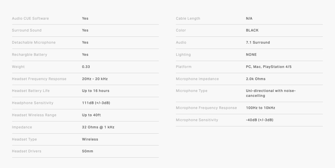 La cuffia gaming con microfono CORSAIR HS70 PRO WIRELESS offre grande comfort e qualità grazie ai padiglioni auricolari in memory foam, ai driver audio personalizzati in neodimio da 50 mm e alla tecnologia da 2,4 GHz a bassa latenza.