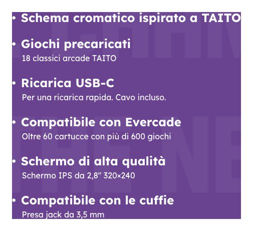Il dispositivo portatile con licenza ufficiale che sta in tasca. Super Pocket Taito Edition contiene 18 fantastici giochi del gigante arcade giapponese, tra cui Space Invaders, Operation Wolf, The New Zealand Story, Rastan, Bubble Bobble, Elevator Action e molti altri, oltre al classico per console Space Invaders '91.