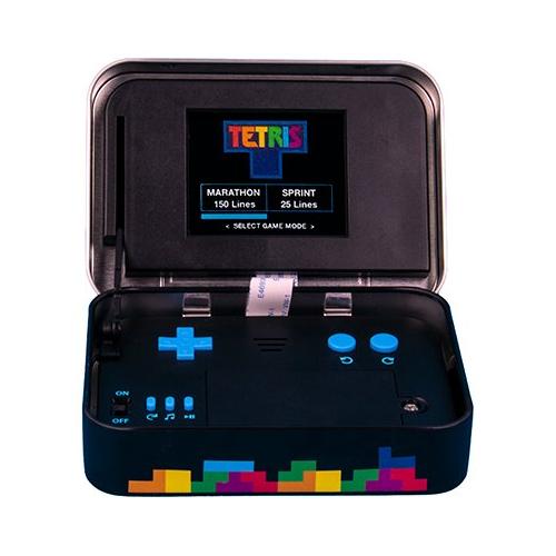 Divertiti con l'iconico gioco Tetris con questo gioco tascabile contenuto in una scatola di latta.
