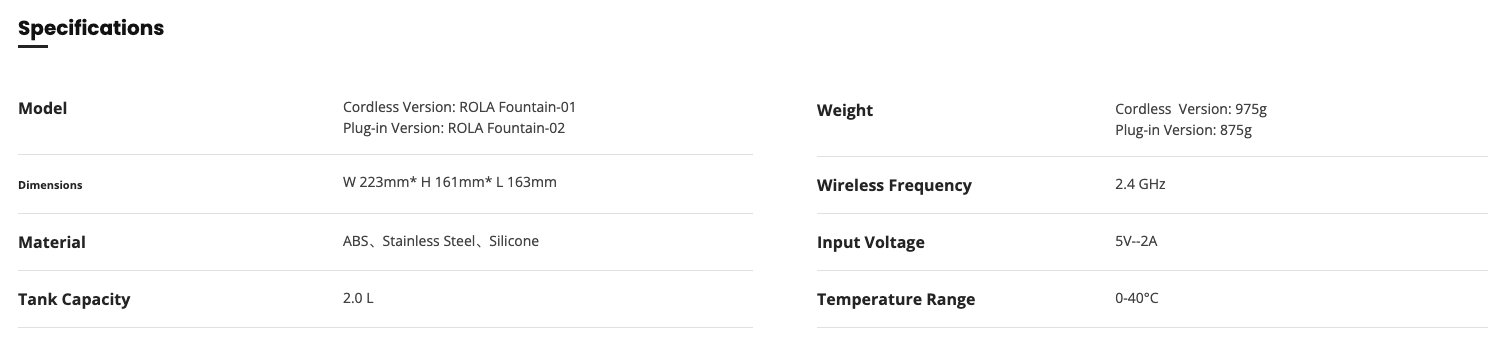 La fontana per animali domestici ROLA Smart Pet è dotata di un avanzato sistema di filtraggio a tre strati che rimuove efficacemente peli, impurità e odori sgradevoli dall'acqua. Grazie a questo, il tuo animale domestico avrà sempre a disposizione acqua fresca e gustosa, che lo stimolerà a bere più spesso, il che si tradurrà in salute dei suoi reni e delle sue vie urinarie.