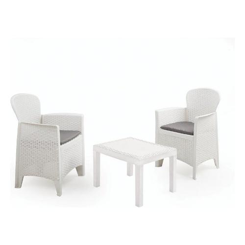 Splendido set da giardino e balcon. Ottimo per arredare con stile tutti gli ambienti esterni della tua casa. Può essere utilizzato anche come arredo interno grazie al design moderno ed elegante. La plastica conferisce al salottino qualità come resistenza, robustezza e durata