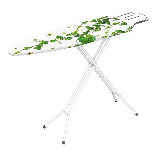 Asse da stiro in acciaio dotata di poggiaferro con inserti in silicone termoresistenti. Struttura gambe a sezione tonda.