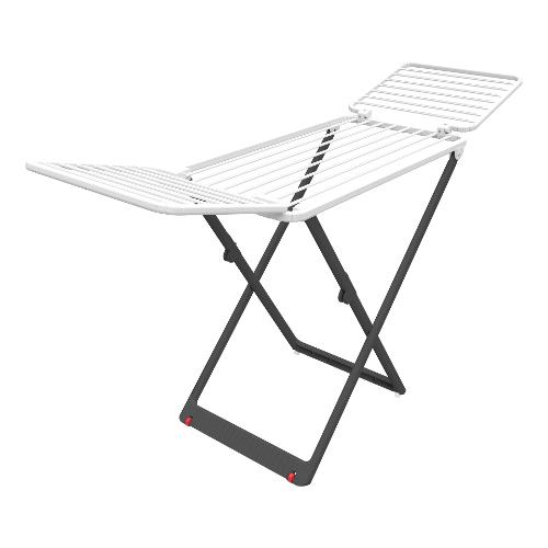 Stendibiancheria da pavimento in resina. Ha una struttura ultra resistente, anti flessione e torsione grazie alla nytrogen technology. Dotato di snodo con pulsante antichiusure accidentali e ruote per uno spostamento facilitato. Ideale per l'esterno. Made in italy.