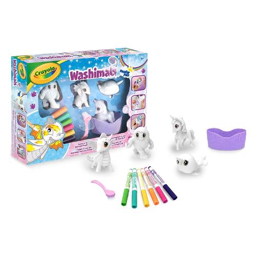 Adorabili cuccioli dal manto vellutato da colorare e decorare in tantissimi modi seguendo la fantasia per ore di divertimento creativo. Usa i pennarellini lavabili per decorare i tuoi nuovi amici – l’unicorno, lo yeti, il narvalo e il draghetto - con i tuoi motivi preferiti. Usa la vasca e la spazzolina per fare il bagnetto ai cuccioli. L’acqua laverà via il colore e i tuoi nuovi amici saranno pronti per iniziare un nuovo gioco.