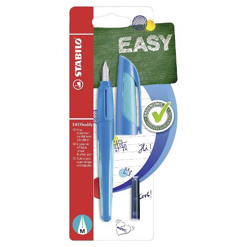 Stabilo easybuddy è il compagno perfetto per i bambini a scuola. È progettato ergonomicamente appositamente per le mani dei bambini, il che lo rende ideale per lo sviluppo di una buona calligrafia. L'impugnatura morbida antiscivolo della penna stilografica garantisce una presa sicura e una maneggevolezza che previene l'affaticamento muscolare prematuro.