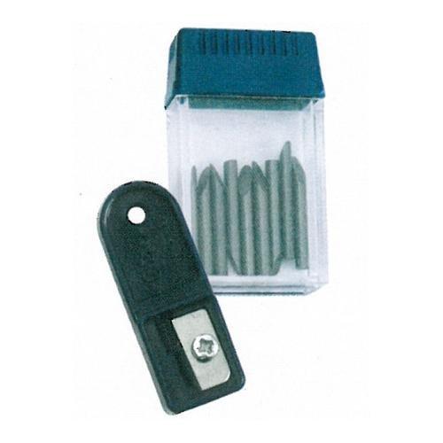 Contenitore plastico trasparente con mine ricambio HB per compassi. Confezione include akche un affilatore per mine