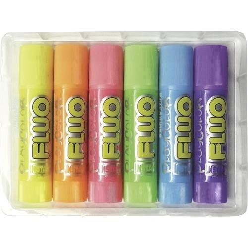 Stick da 10gr facile, pulito e divertente. stappa, gira e colora. per carta, cartoncino, legno e cartone. senza bisogno di acqua. colori lavabili con acqua. finitura brillante satinata, non necessita di vernice protettiva. asciuga rapidamente. non ondula la carta. a seconda della pressione esecitata si puo' avere l’effetto pastello a cera o tempera coprente. confezione da 6 colori fluo: giallo, arancio, fuxia, viola, azzurro, verde.