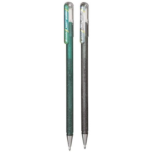 Set penne a sfera cappuccio 2 pz tratto Fine - 0,4 mm Nero e verde gel K110 HYBRID DUAL METALLIC 0X19078