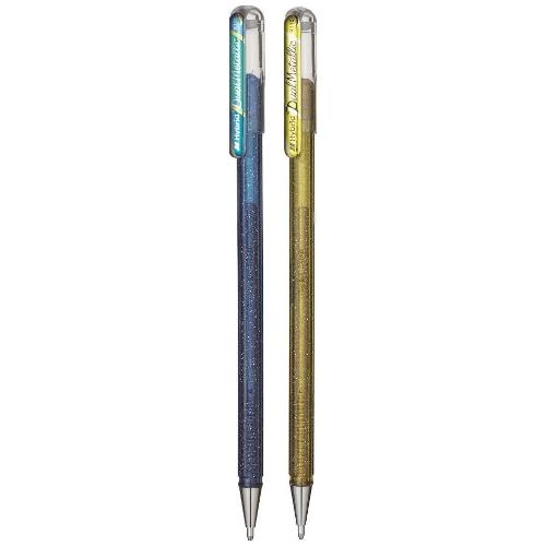 Set penne a sfera cappuccio 2 pz tratto Fine - 0,4 mm Blu e Oro gel K110 HYBRID DUAL METALLIC 0X19078