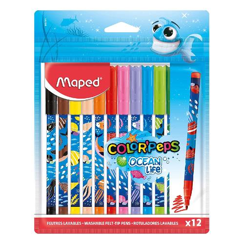 Pennarelli disegno per bambini sezione tonda 12 pz tratto Medio - 2,0 mm OCEAN LIFE Colori assortiti 845701