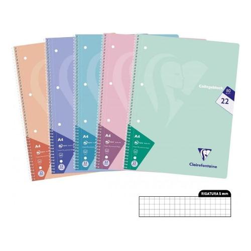 Clairefontaine Quaderno con spirale A4 Pastel quadretti 5 mm 90 gr/mq Assortito 306252C
