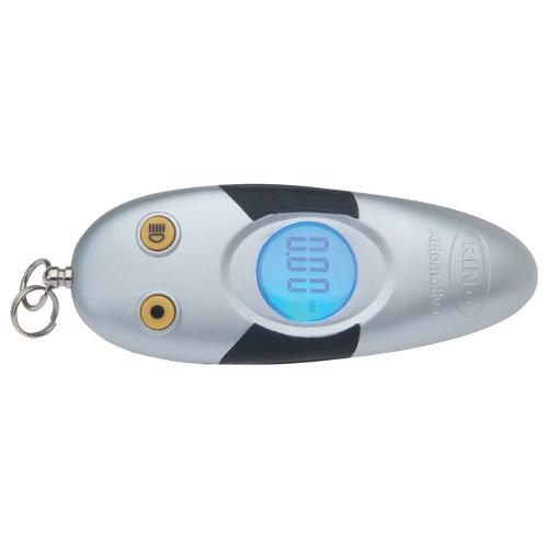 Mini manometro digitale con portachiavi. Provvisto di luce led frontale per un agevole individuazione della valvola pneumatico anche nelle ore notturne. Il display retroilluminato indica la pressione in psi, bar, kpa, kg/cm2. Gamma di misurazione: 0-99 psi/0-7 bar. Precisione: +/-1 psi.